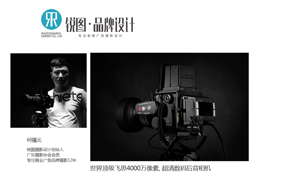 像素级的品质苛求是我们锲而不舍的摄影精神,4000万飞思后背,专注十二年商业广告的摄影师.我们承诺提供的每一张图片都是我们摄影师认为OK的片子.好产品拍出心动感!